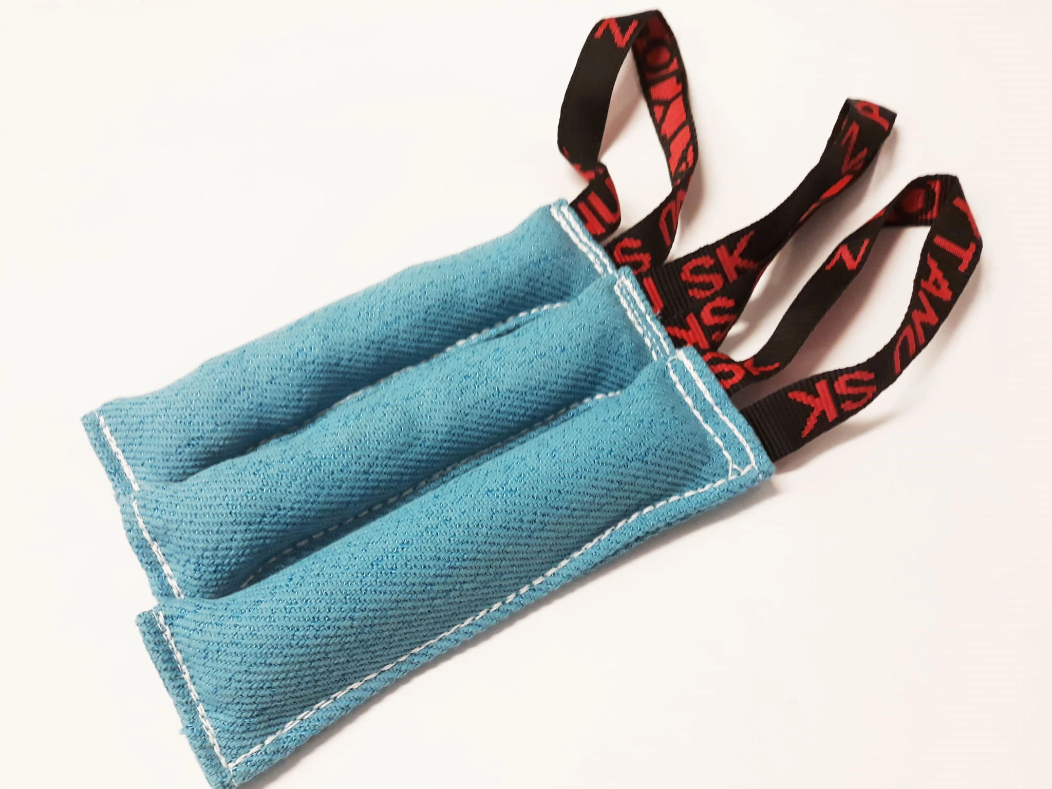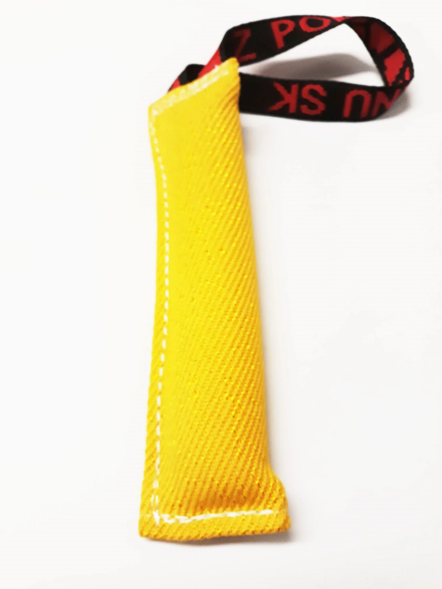 Gryzak z materiału ringowego. Jeden uchwyt. Bardzo twardy. Wymiary ok. 25 cm x 7,50 cm.