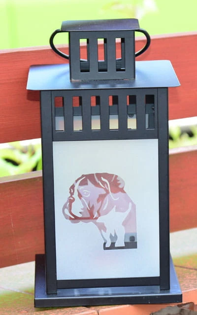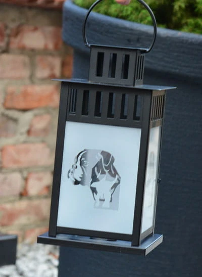Lampion ogrodowy (latarenka), z głową boksera