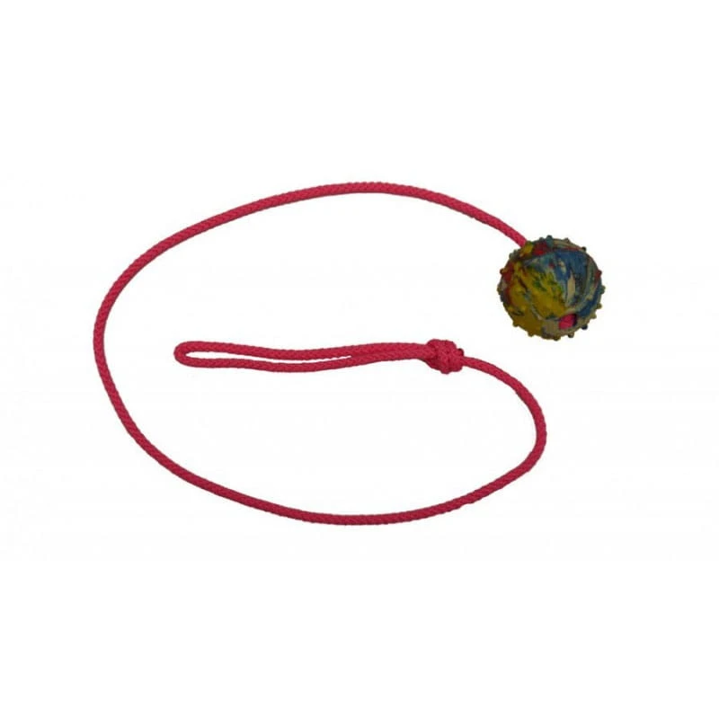 Gumowa piłka zawieszona na sznurku. Wykonana z wysokiej jakości materiałów zapewniających.