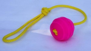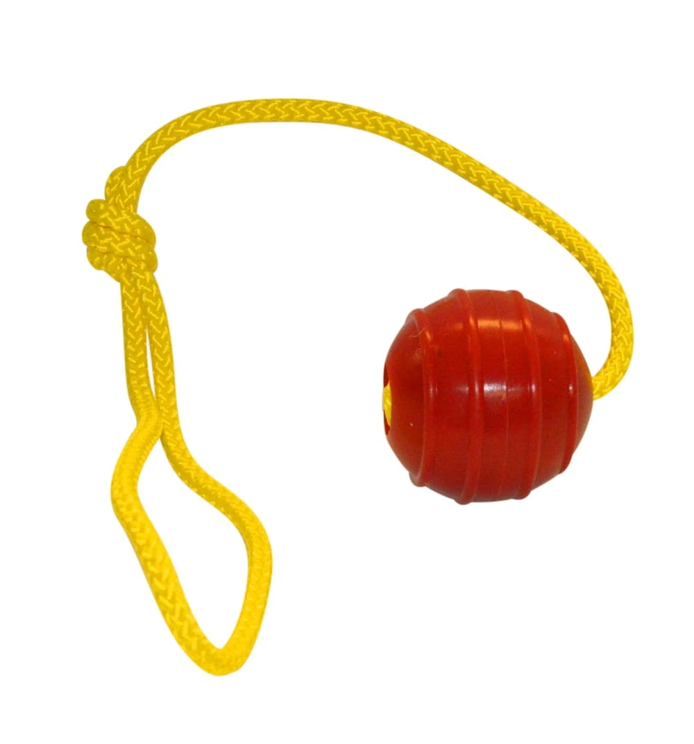 Piłka silikonowa na sznurku. Średnica 6 cm. Twarda.