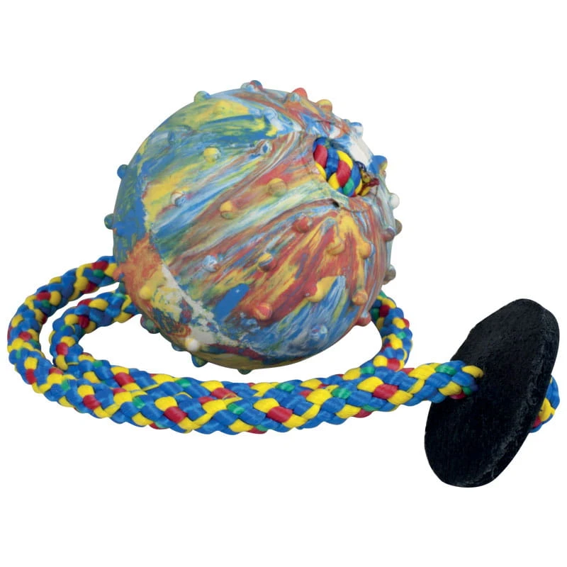 Piłka na sznurku wykonana została z wysokiej jakości materiałów.