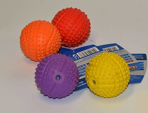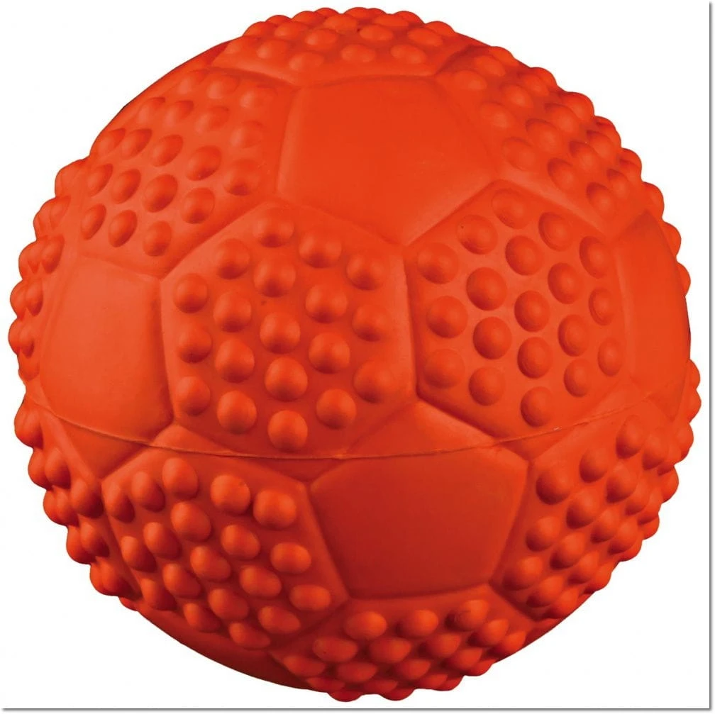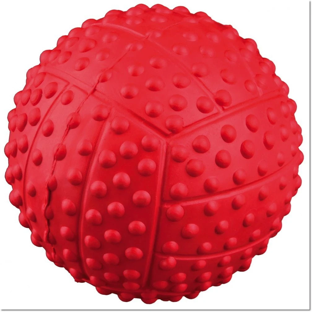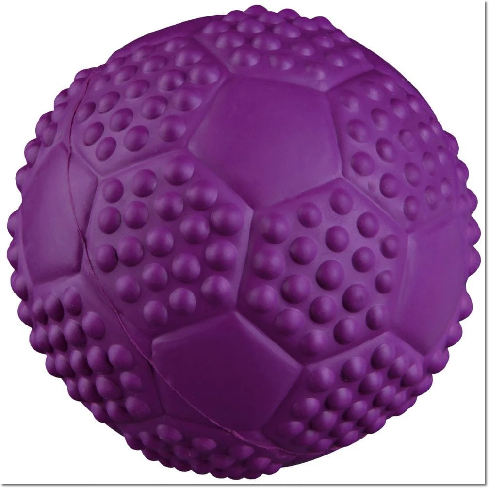 Miękka piłka wykonana z naturalnej gumy z wypustkami, piszcząca- świetnie nadaje się dla psów w każdym wieku, zarówno seniorów jak i ząbkujących szczeniaków.