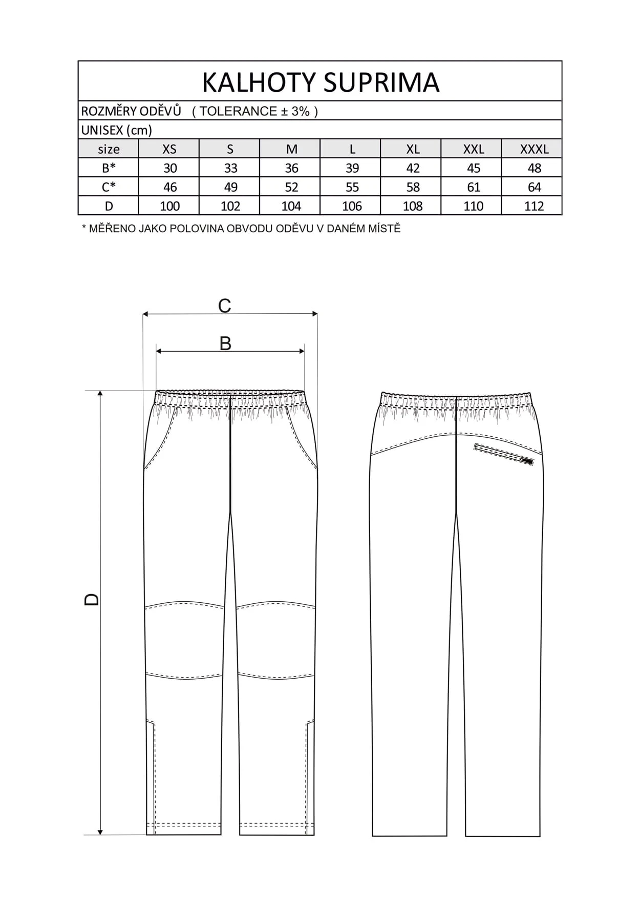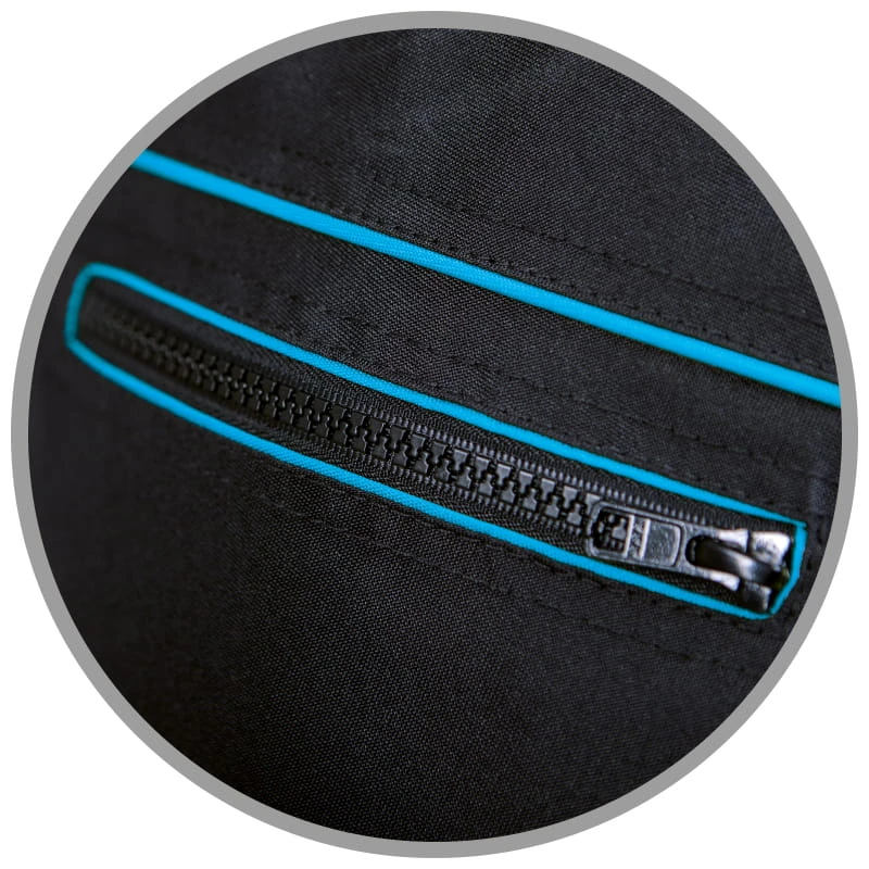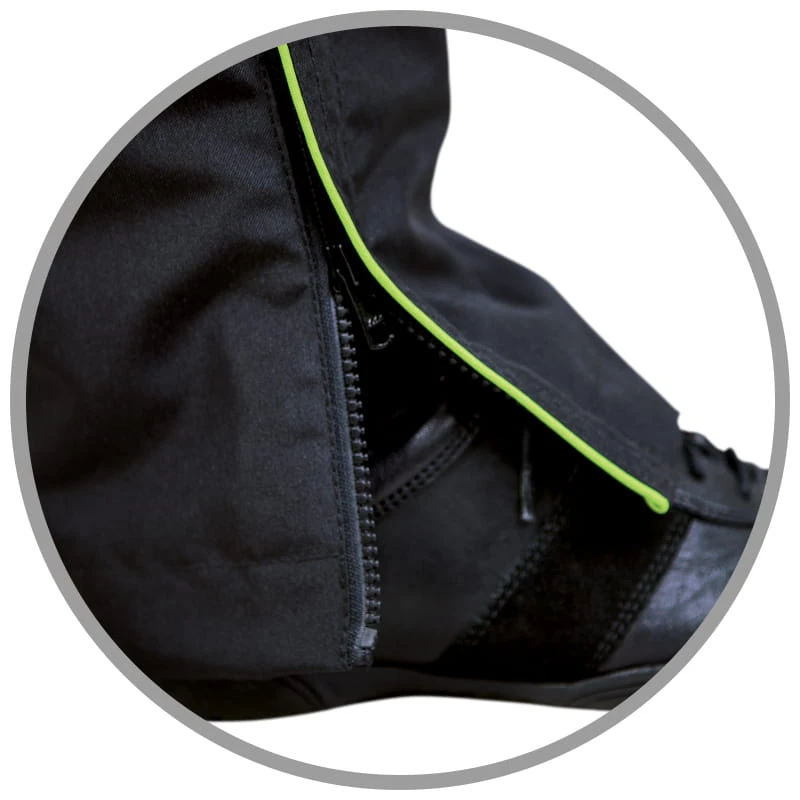 Zamek na 1/3 dł. nogawki, wyprofilowane kolana.