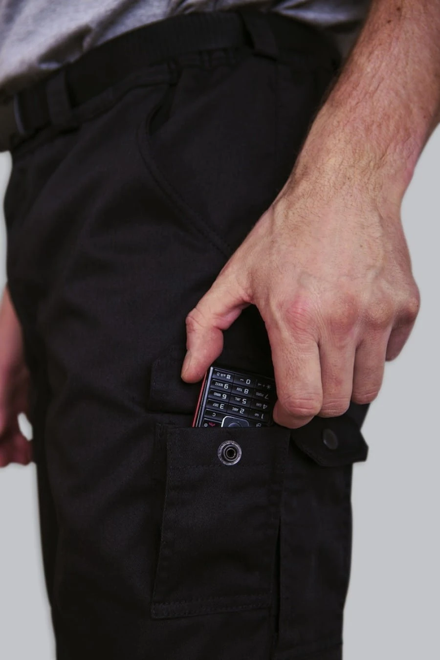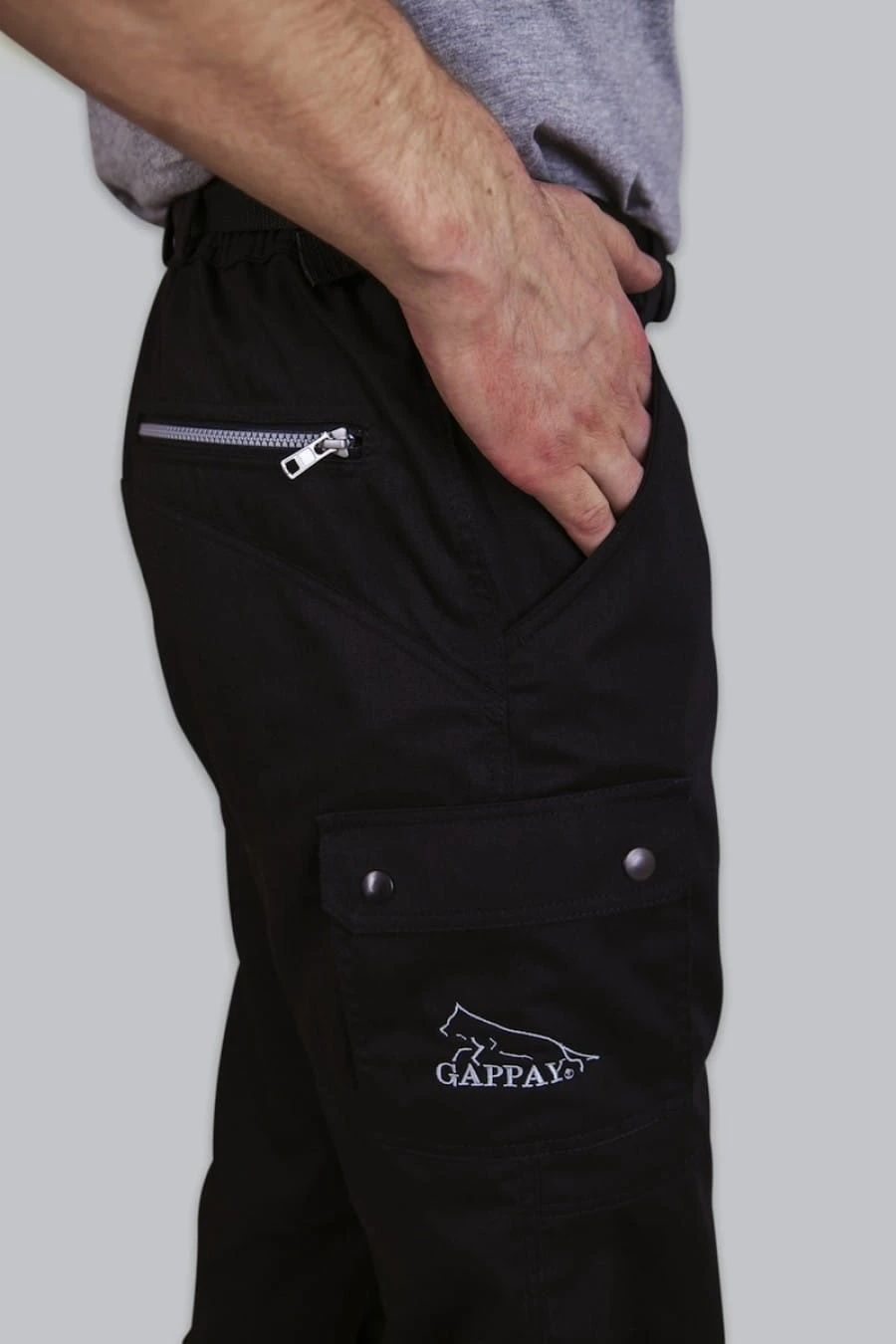 Spodnie VEERLE z paskiem, 5 zapinanych kieszeni. Czarne.