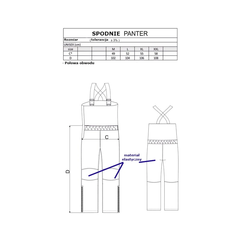 Pełna podszewka 3D, wzmocnienia w miejscach: pośladkach, przednim udzie i piszczelu.