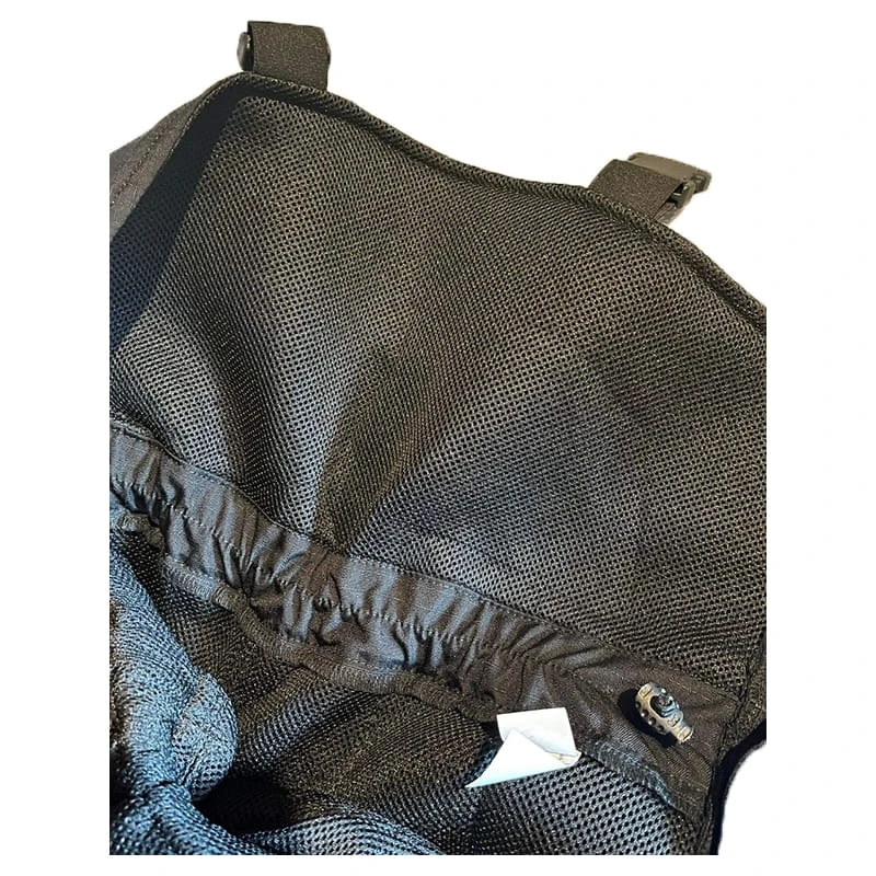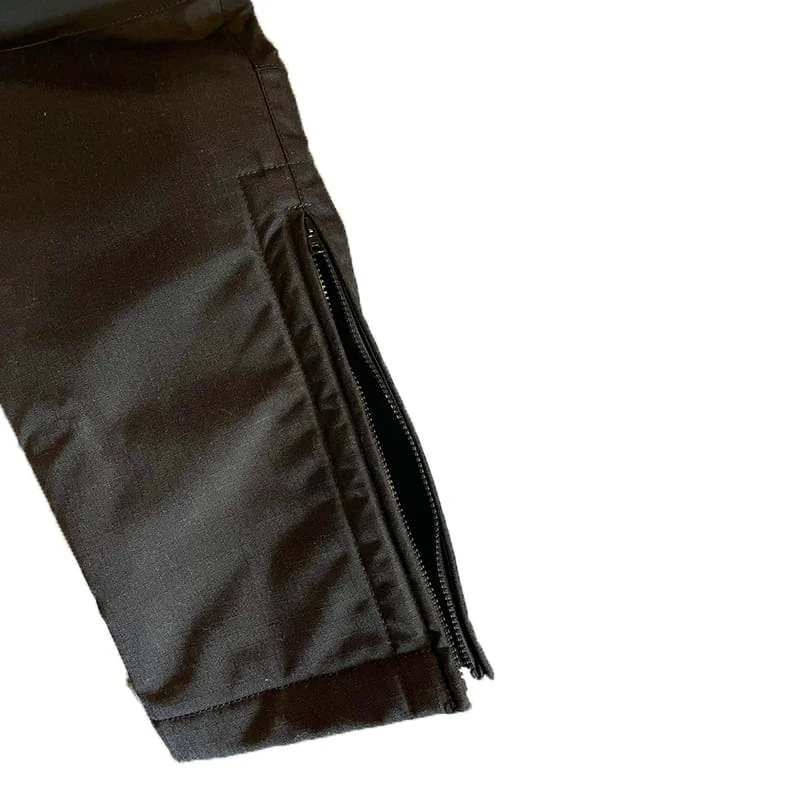 Materiał: połączenie elastycznego materiału (kolana, z tyłu uda i pośladki) i mocnego materiału cordura